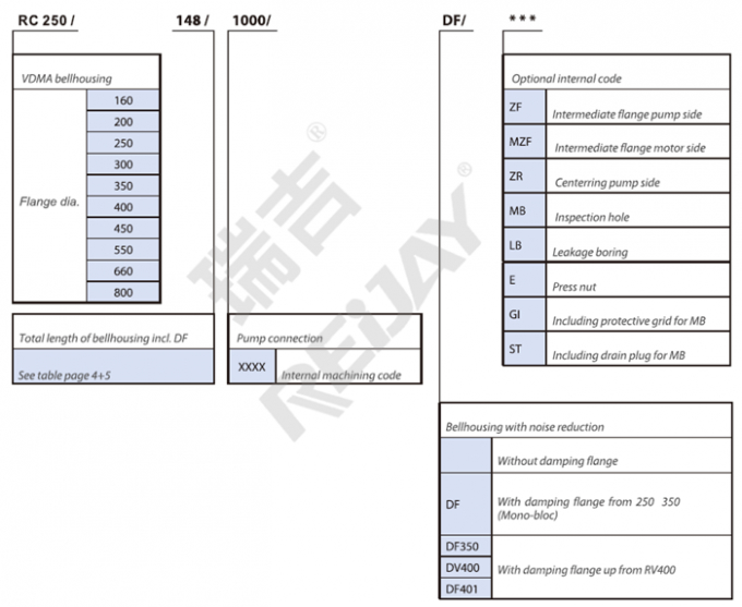 RC series bellhousing is used for the connection of IEC standard motors and pumps or NEMA standard motors and pumps. Motor shaft and pump shaft adopt self-centering design, and the size is manufactured according to VDMA24561 standard. It can be used for overloading.