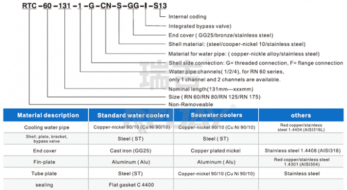 Low pressure drop and high cooling efficiency RTC standard tubular oil-water coolers