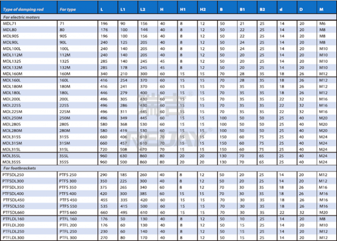 1. The damping rods are applicable for damping for IMB35 motor foot, NEMA motor foot. and VDMA24561 standard bracket foot.